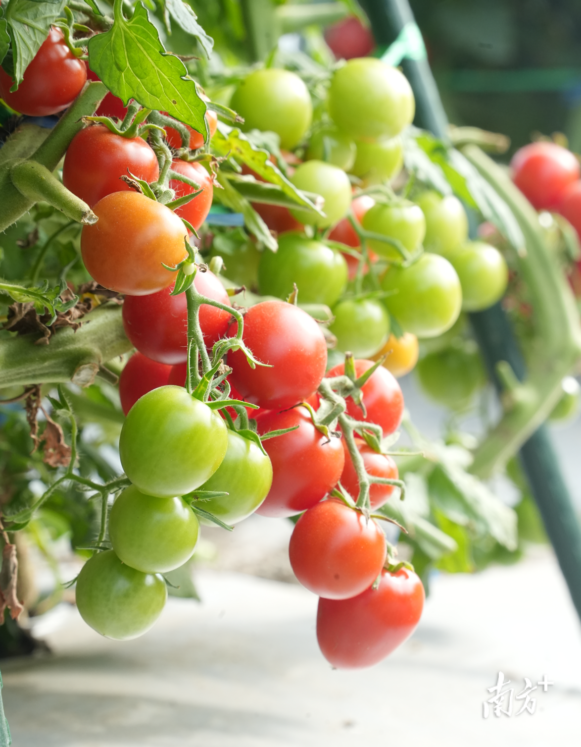 在茂名市新华农场,挂满枝头的樱桃番茄像一串串宝石,在冬日的暖阳下闪烁着诱人的光泽,田间地头弥漫着清甜的气息。